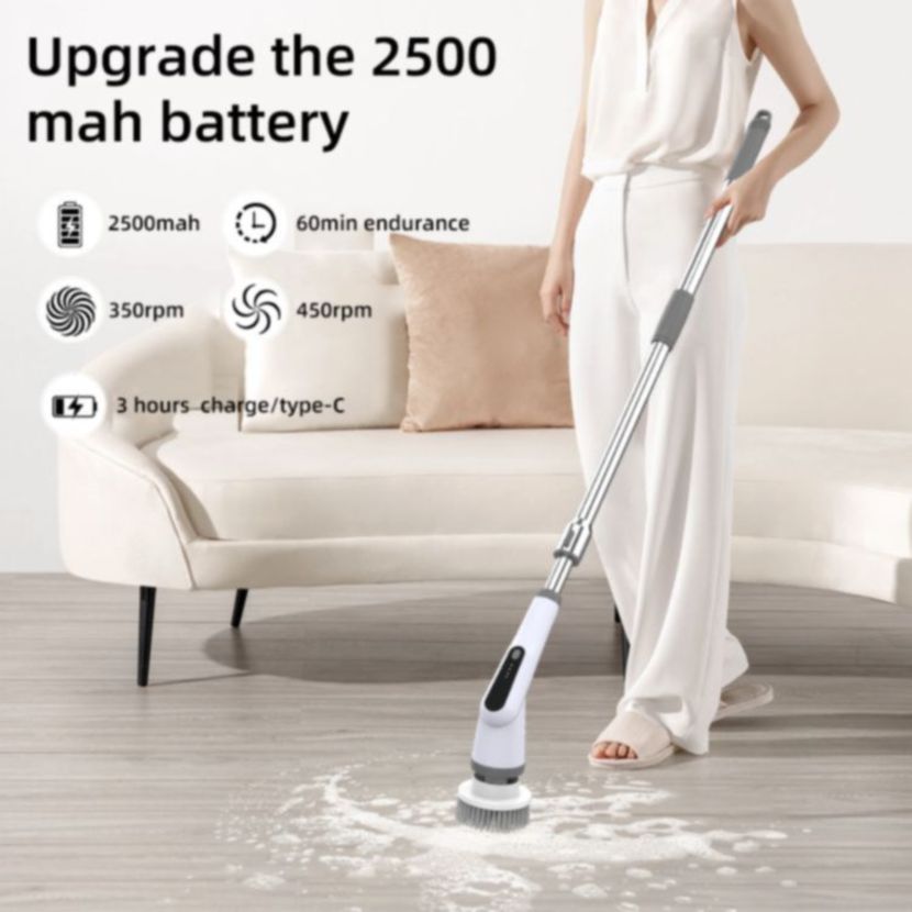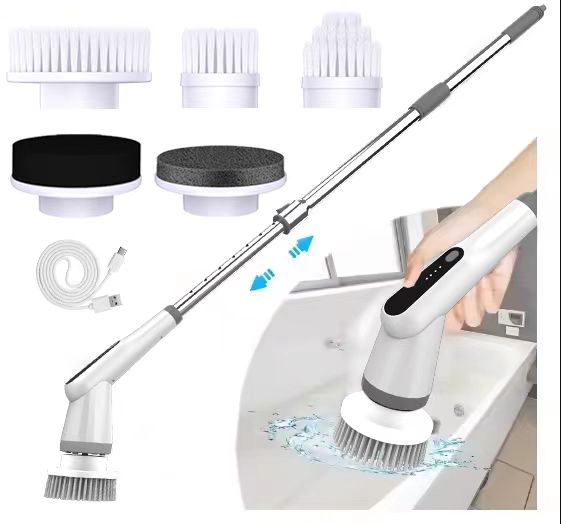 High Quality White Rechargeable Spin Scrubber Bathroom Electric Cleaning Brush