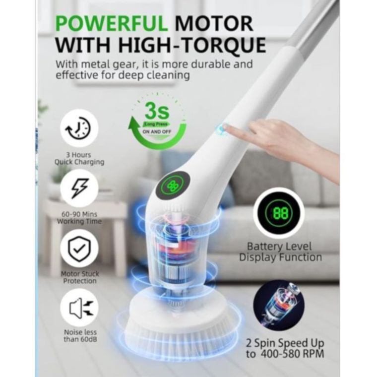Popular Waterproof Kitchen Sink Rotary Cleaner Handle Electric Spin Scrubber With LED Display for Glass Wall Cleaning