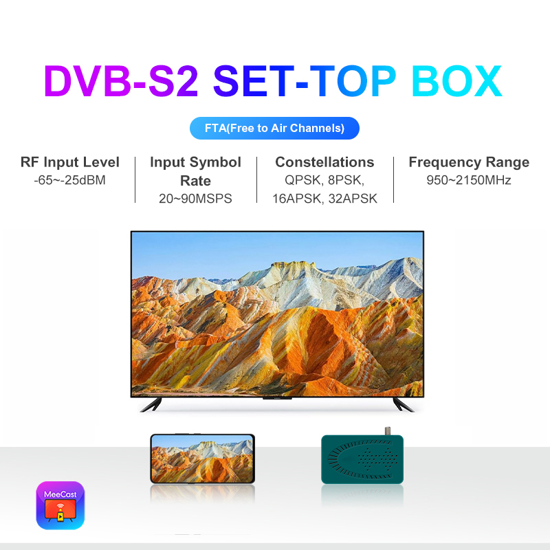 DVB-S2/S2X, FTA, HD, MeeCast, USB PVR, EPG, USB Wi-Fi, IPTV, Youtube, MeeTube, Tiktok, ਆਨਲਾਈਨ ਅੱਪਗ੍ਰੇਡਿੰਗ, CAS ਵਿਕਲਪਿਕ