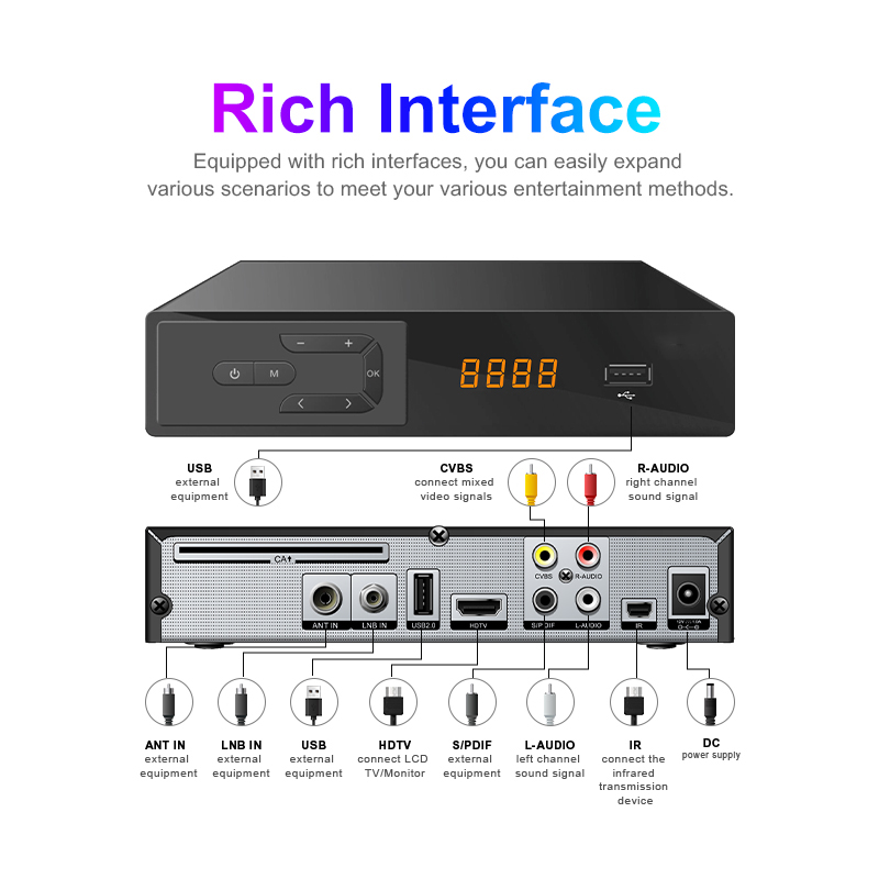 DVB-S2/T2/C, FTA, HD, MeeCast, USB PVR, EPG, USB Wi-Fi, IPTV, Youtube, MeeTube, Tiktok, Online Upgrading