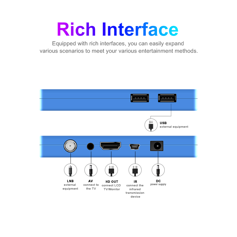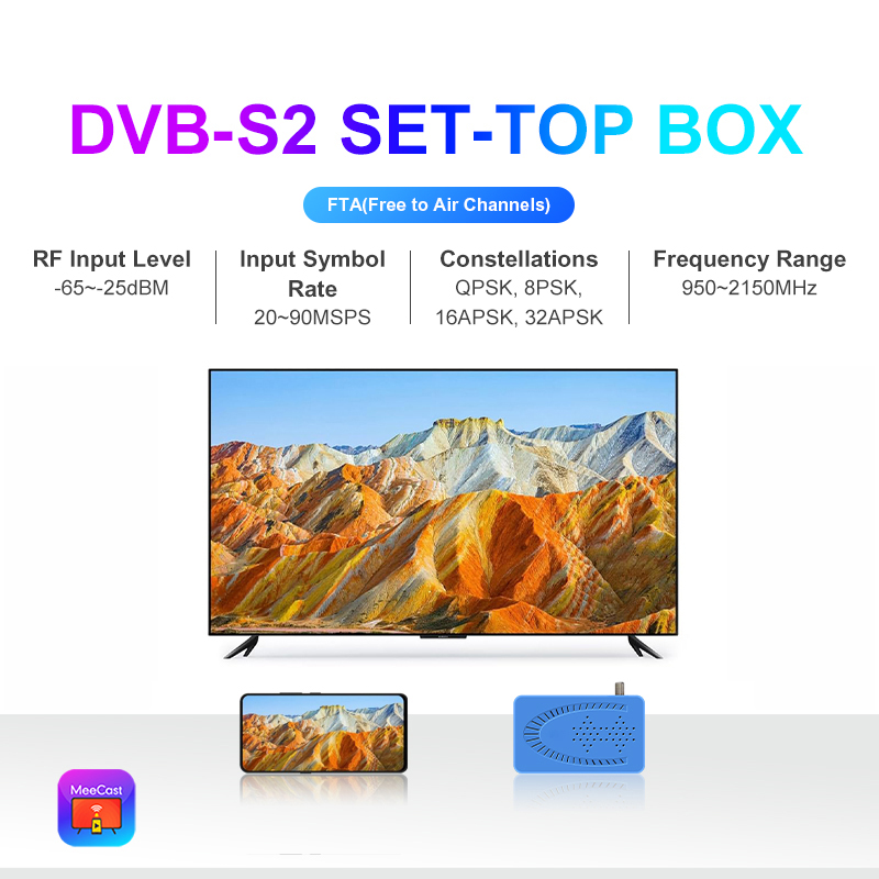 DVB-S2/S2X, FTA, HD, MeeCast, USB PVR, EPG, USB Wi-Fi, IPTV, Youtube, MeeTube, Tiktok, Online Upgrading, CAS optional