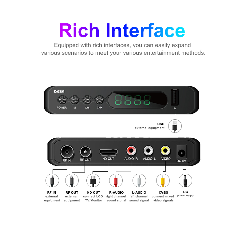 DVB-T2, FTA, HD, MeeCast, USB PVR, EPG, USB Wi-Fi, IPTV, Youtube, MeeTube, Tiktok, Online Upgrading